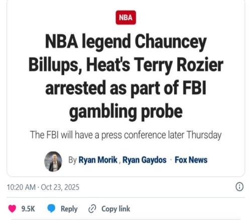 10月23日上午10点,联邦调查局(FBI)在纽约召开紧急记者会,宣布起诉30多名涉案人士——其中竟包括波特兰开拓者主教练、名人堂球星昌西·比拉普斯(Chauncey Billups)以及迈阿密热火队后卫特里·罗齐尔(Terry Rozier)。