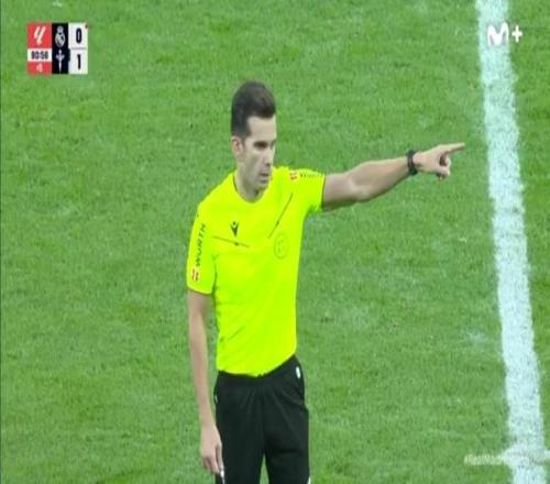伤停补时阶段,亚历杭德罗-金特罗同样以短时间内连续出牌的方式罚下另一位皇马后卫阿尔瓦罗-卡雷拉斯。