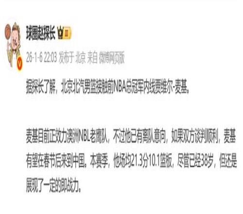 而且麦基的关注度也摆在这里,他在国内的人气一直非常高,如果到时球场上的输出也不错,他肯定会成为CBA的一大热门球员。