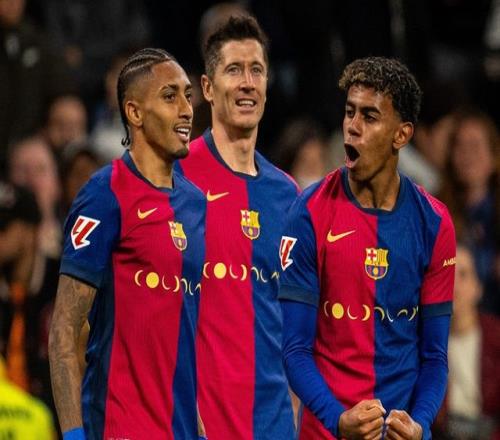 去年1月的西超杯,巴萨2-0战胜毕尔巴鄂竞技,皇马3-0轻取马洛卡,决赛连续3年上演国家德比对决。这场决赛打得极为精彩,亚马尔、莱万、拉菲尼亚(2球)的三叉戟破门,巴尔德打进1球,皇马则由姆巴佩、罗德里戈破门,巴萨5-2大胜。
